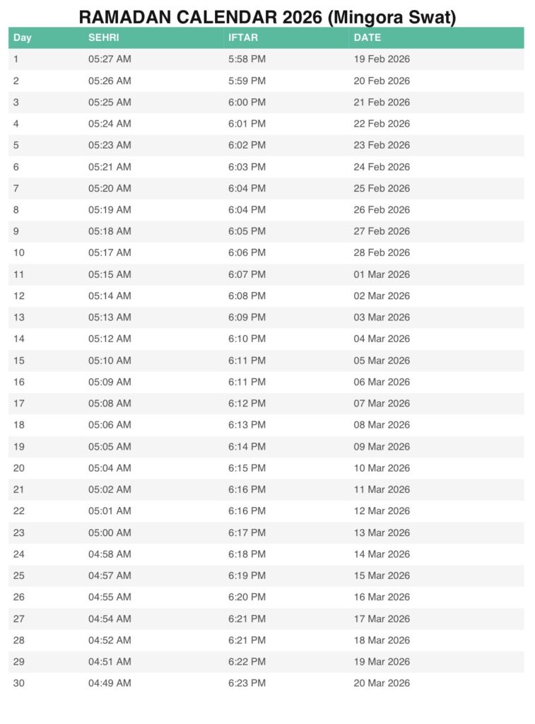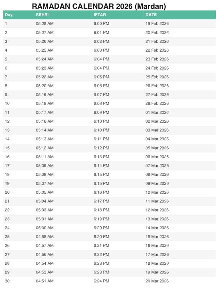 One of the most important aspects of Ramadan fasting is starting and ending the fast at the correct times. The KPK Ramadan Calendar 2026 helps individuals avoid confusion by providing verified daily timings.