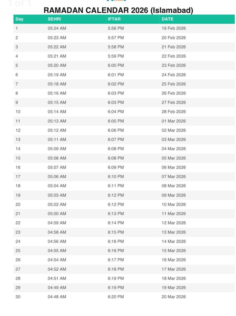 ISLAMABAD RAMADAN CALANDER 2026